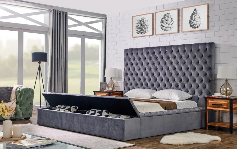 CJ Velvet Silver King Storage Bed